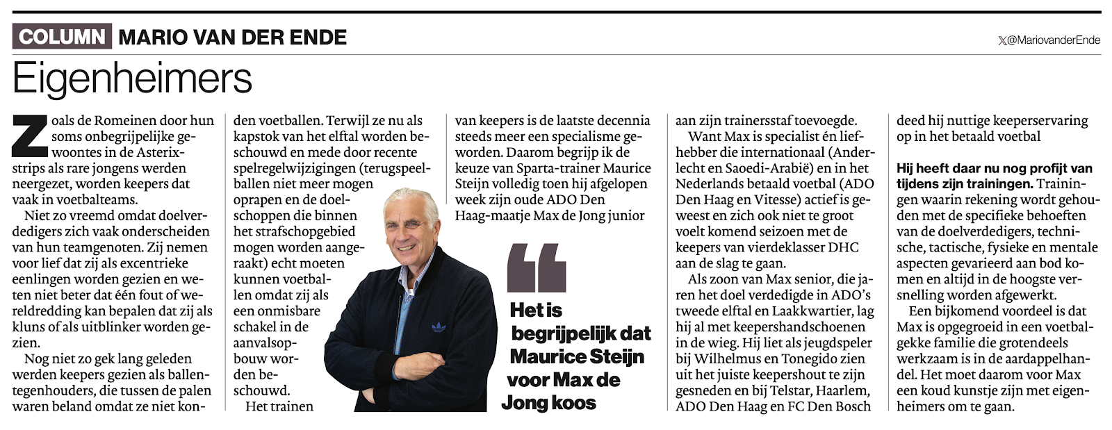 Mario's column in Algemeen Dagblad - Haagsche Courant